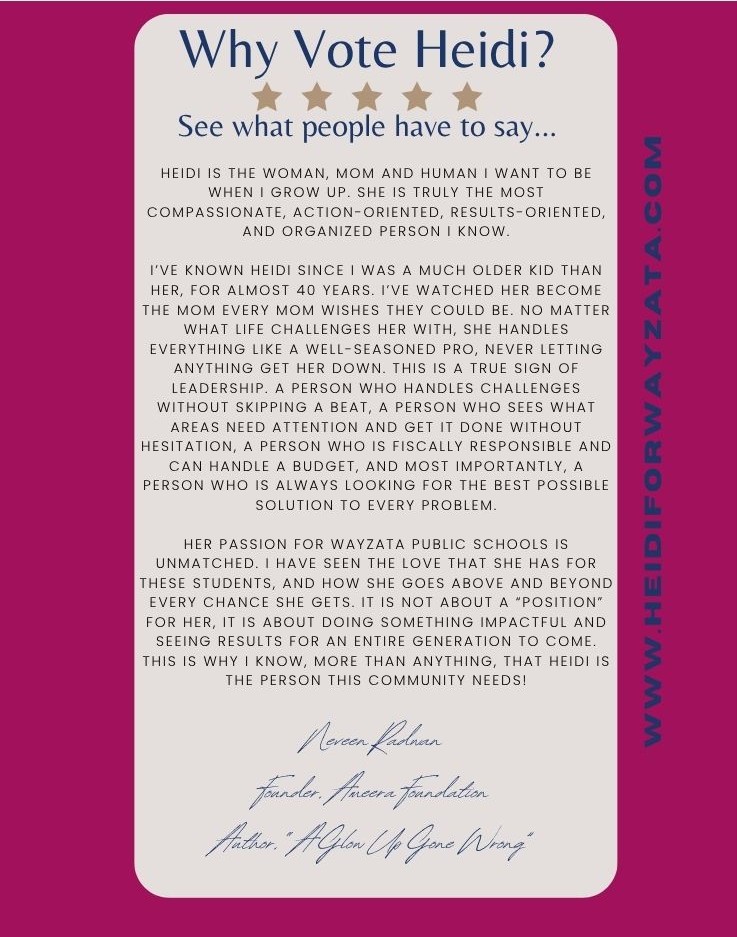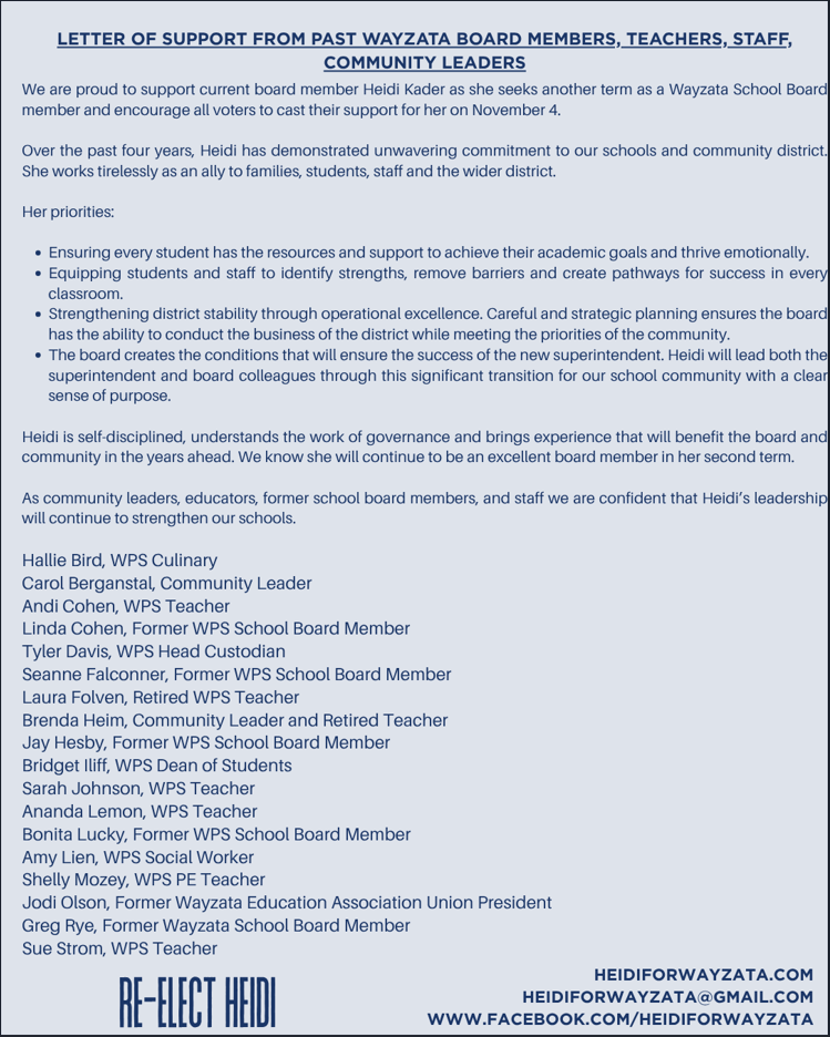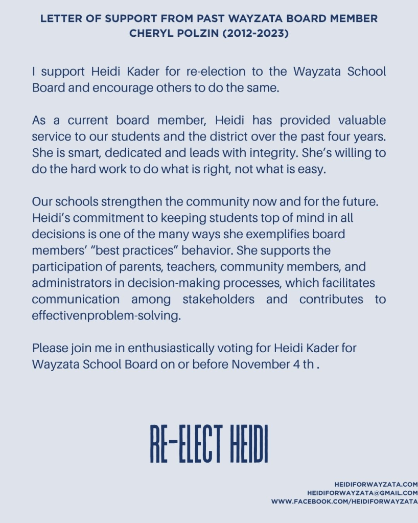 Re-elect Heidi Kader for Wayzata School Board in 2025